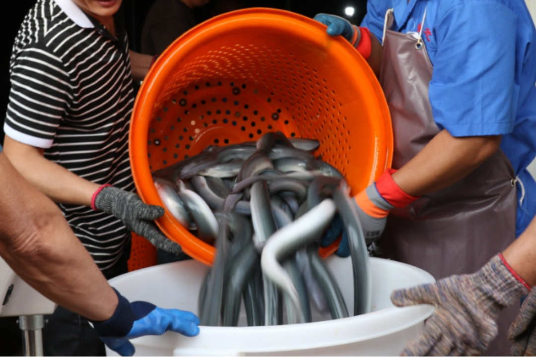 “鳗鱼的色泽和身型都很好,这鱼的品质极好。”充满活力的鳗鱼在水中来回穿梭,获得现场人们的交口称赞。也为项目地提供了大量直接和间接的就业岗位,带动当地就业和增收,助力产业兴旺、乡村振兴。
