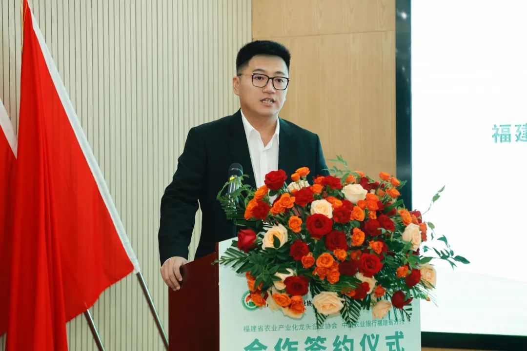 签约仪式上,陈加成会长表示,金融是驱动经济发展的“源头活水”。当前,我国正处于建设农业强国的重要阶段,乡村全面振兴的宏伟蓝图正稳步有力地向前推进。作为乡村振兴主力军的农业龙头企业,迎来了新的发展良机。在这次双方的战略合作中,农行福建省分行为我省龙头企业破解资金难题、推动高质量发展提供强有力的金融支持,为福建“八山一水一分田”、港湾经济的大农业发展注入了强大的金融动力,同时也为双方开展广泛、长期、稳定的合作奠定了坚实基础。