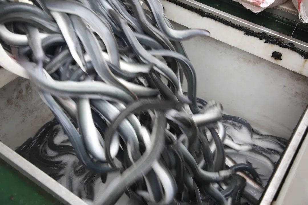 分拣完成后,基地员工将满筐的鱼倒进冰池里,以冷水吊养的形式降低活力,便于过秤装车。此次出鱼持续多日,每一车鳗鱼装车完毕后,便马不停蹄地发往市场。