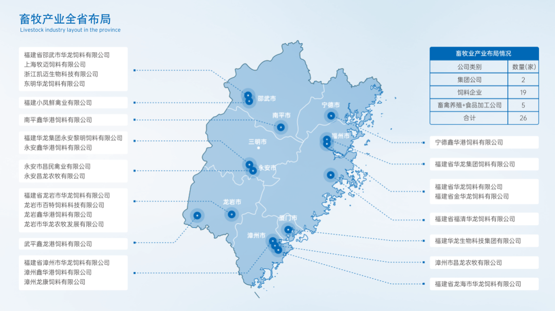 华龙集团积极推进小凤鲜蛋鸡项目,2024年已正式投产;充分发挥福建华龙生猪产业研究院的作用,已建立国家良种基地,在畜牧产品核心竞争力基础上进行全产业链延伸,打造畜牧全产业链供应链平台;集团发力畜牧食品深加工,全过程导入食品安全管理体系,打造安全、健康、绿色、生态式战略性发展模式,为消费者提供“一只鸡、一只鸭、一头猪、一粒蛋、一块肉……”的民生健康食品,积极布局省外建厂,做到立足福建,走向全国,打造成为福建区域性一二三产业融合的现代畜牧集团化龙头企业。