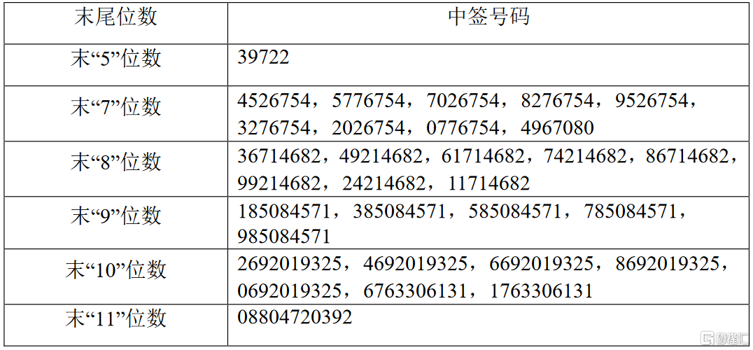 凡参与永22转债网上申购的投资者持有的申购配号尾数与上述号码相同的,则为中签号码。中签号码共有12.505万个,每个中签号码只能认购1手(1000元)永22转债。