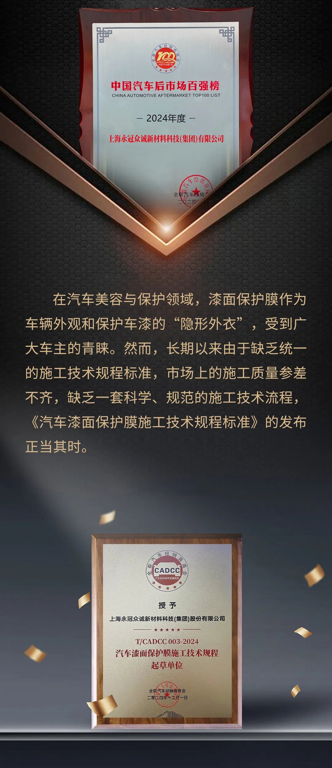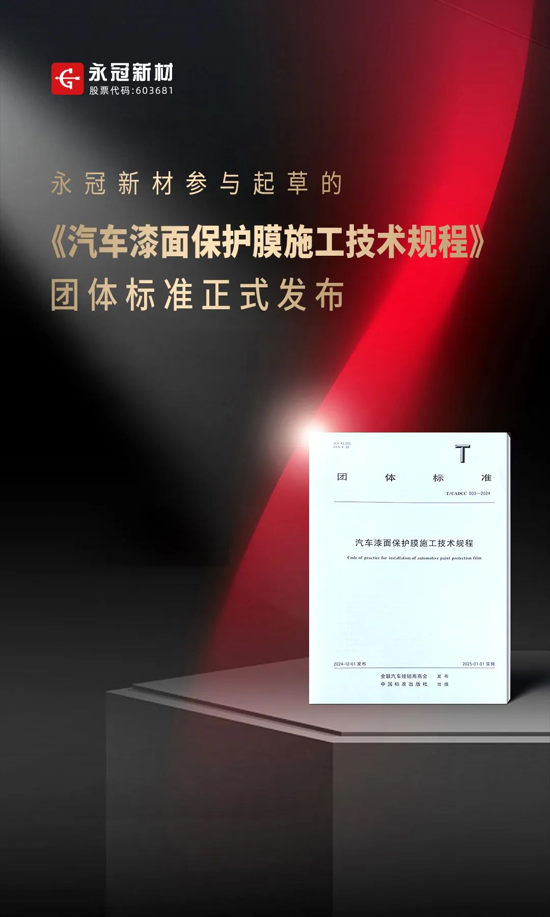 永冠新材参与起草的《汽车漆面保护膜施工技术规程》团体标准正式发布