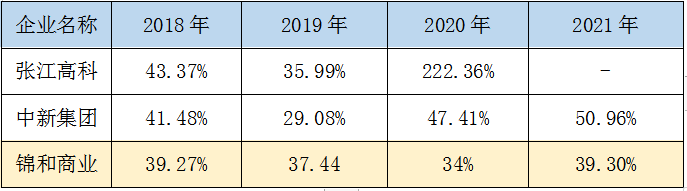 表3:2018-2021年部分产业园企业毛利率发展情况
