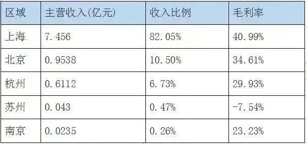 从区域分布来看,营业收入还是主要依靠上海地区。2021年上海地区收入占总收入的82.05%,毛利率为高达40.99%。其他区域则比重相对较小,北京、杭州的收入占比仅为10.05%、6.73%,毛利率也仅为34.61%、29.93%,苏州区域的毛利率更是为-7.54%。说明锦和商业的规模化、品牌化扩张道路还是存在一定问题。