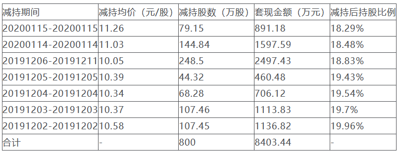 据新浪财经信息,数据显示,张桂丰最初持股8403.5万股,占总股本的20.22%。张桂丰从2019年12月2日起,第一次减持福龙马股份,迄今为止,累计减持公司股票800万股,累计套现约8403.44万元。