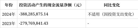 投资活动产生的现金流量净额为-388,285,875.14元,去年为-279,769,841.43元,主要因公司对外投资资金支出增加,反映公司积极拓展业务,寻求新的增长点。