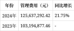 管理费用为125,637,292.42元,较去年的103,194,877.46元增长21.75%,主要因公司业务规模扩大,管理复杂度增加,导致相关费用上升。