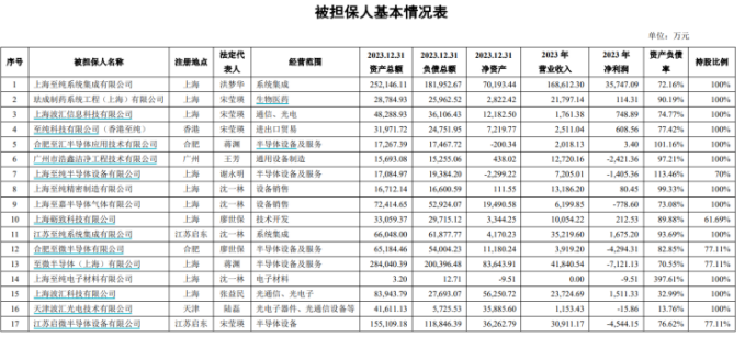 截至今年一季度,公司短期借款+一年到期的非流动负债合计约43.79亿元,货币资金仅有8.74亿元。除长期维持高杠杆运营,至纯科技还频繁为旗下子公司提供担保,截至2024末,其担保总额占公司净资产的比例高达64.39%。这种种岌岌可危的资金状况,如同高悬头顶的达摩克利斯之剑,一旦市场环境恶化、融资渠道收紧,或是担保链条中的任何一环出现断裂,公司或将遭遇资金断链的厄运。