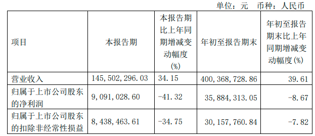 10月27日,安记食品(SH603696)公告,第三季度营业收入约1.46亿元,比上年同期增长34.15%,归属于上市公司股东的净利润约909.1万元,比上年同期减少41.32%,归属于上市公司股东的扣除非经常性损益的净利润843.85万元,比上年同期减少34.75%,基本每股收益0.04元/股,比上年同期减少42.86%,总资产6.41亿元,比上年同期增长2.51%。