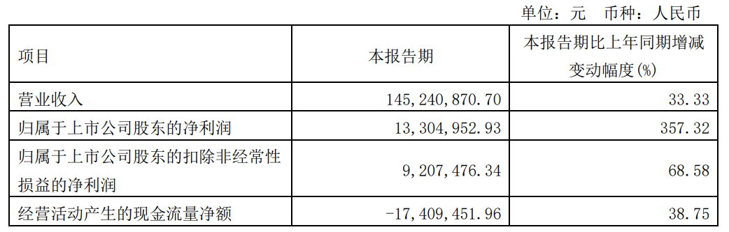而根据安记食品此前发布的2023年第一季度财报显示,公司实现营收1.45亿元,同比增长33.33;实现归属净利润1330.5万元,同比增长357.32%;实现扣非净利润920.75万元,同比增长68.58%。