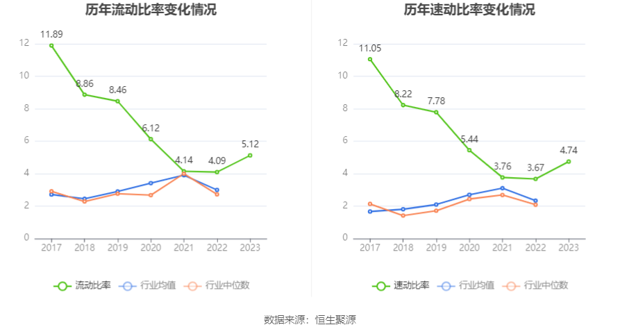 2023年,公司流动比率为5.12,速动比率为4.74。