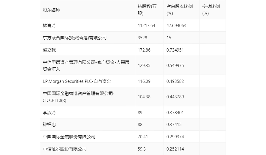 年报显示,2023年年末公司十大流通股东中,新进股东为赵立乾、中信里昂资产管理有限公司-客户资金-人民币资金汇入、J.P.Morgan Securities PLC-自有资金、中国国际金融香港资产管理有限公司-CICCFT10(R)、中国国际金融股份有限公司,取代了三季度末的上海珠池资产管理有限公司-珠池新机遇私募投资基金7期、太平资管-招商银行-太平资产量化6号(人工智能)资产管理产品、江逢娣、林秋、国信证券股份有限公司。在具体持股比例上,李淑芳、中信证券股份有限公司持股有所下降。