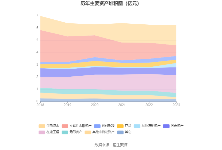 资产重大变化方面,截至2023年年末,公司交易性金融资产较上年末减少33.63%,占公司总资产比重下降7.07个百分点;其他流动资产较上年末增加668.43%,占公司总资产比重上升4.81个百分点;货币资金较上年末增加14.80%,占公司总资产比重上升3.43个百分点;其他非流动资产较上年末减少51.47%,占公司总资产比重下降2.79个百分点。