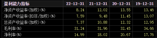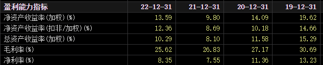 毛利率从2019年的30.69%降到2022年的25.62%;净利率从13.23%降到2022年的8.35%。