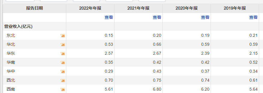 不算多苛求,2022年,有友食品各区域市场均出现收入下滑。其中“大本营”、营收占比过半的西南市场降幅尤明显:营收5.61亿元,同比下滑17.42%。第二主力华东市场也下滑3.9%。
