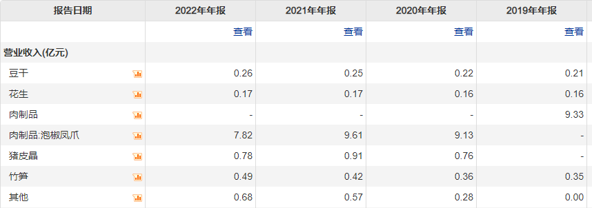 2019年至2022年,公司泡椒凤爪营收分别为8.44亿元、9.13亿元、9.61亿元、7.82亿元。可见,整体成长起伏不定,相比2019年,上市3年来企业营收不增反降,成长瓶颈感是否显现?