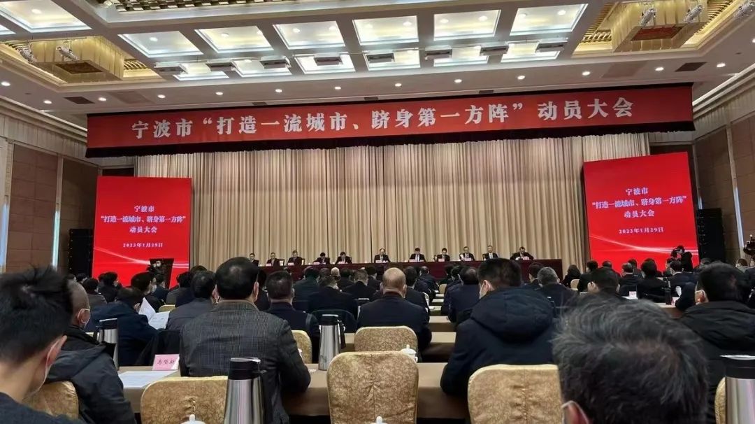 1月29日上午,中共宁波市委办公厅、宁波市人民政府办公厅“打造一流城市、跻身第一方阵”动员大会在市行政会议中心隆重召开。宁波市委书记彭佳学出席并作重要讲话。大会对“2022年宁波市人民政府质量奖和质量创新奖”获奖单位进行表彰,宁水集团作为“2022年宁波市人民政府质量奖”获得企业上台领奖。