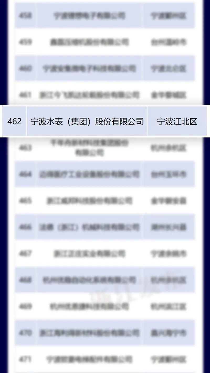近日,由浙江省高新技术企业协会主导,浙江省科技信息研究院组织测评的“2024年度浙江省高新技术企业创新能力500强榜单”正式揭晓,宁波水表(集团)股份有限公司(以下简称“宁水集团”或“公司”)凭借卓越的创新实力与突出的技术成果成功上榜。