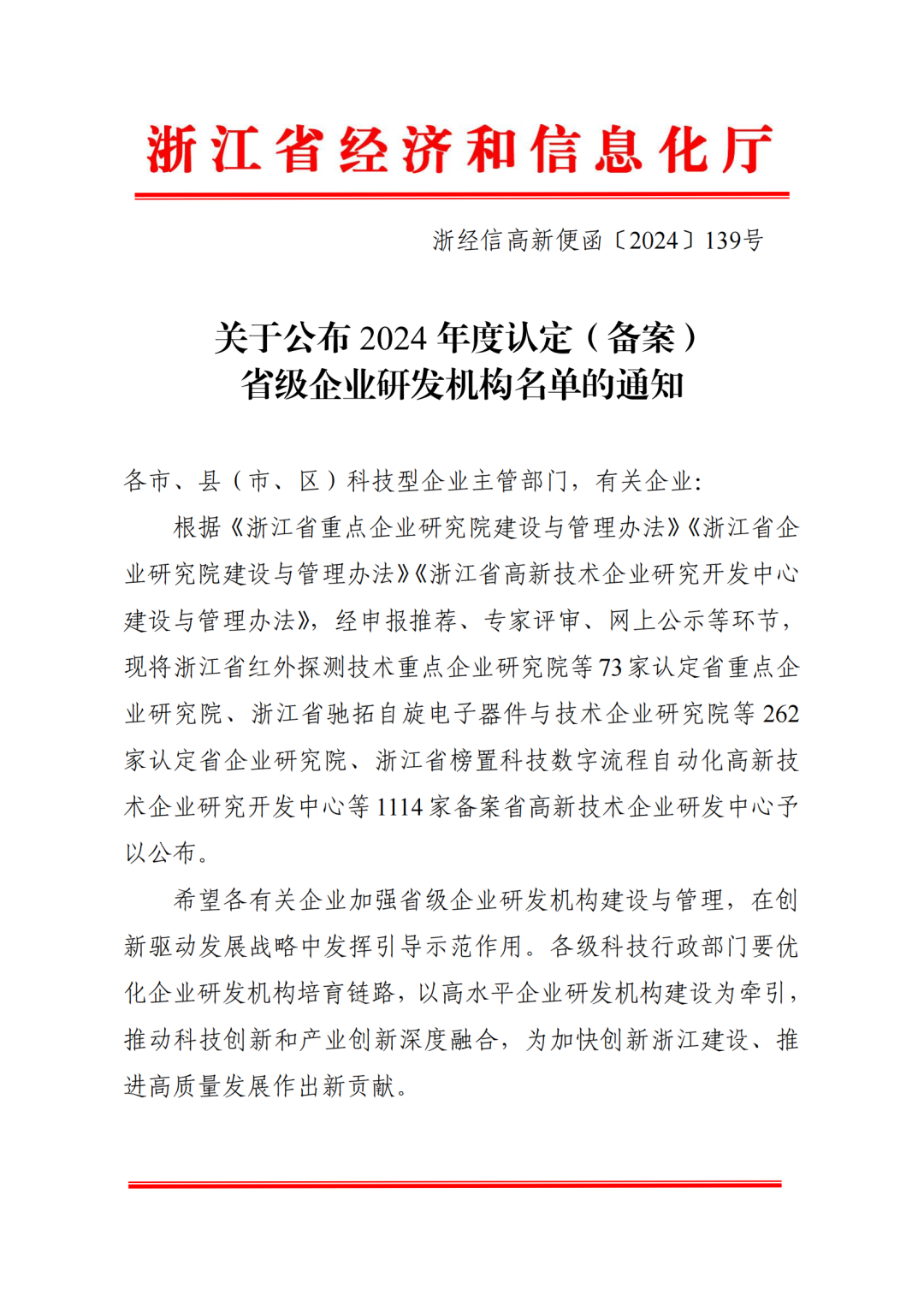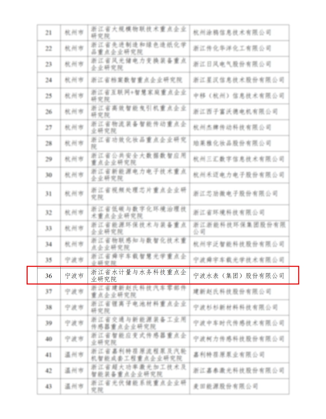近日,浙江省经济和信息化厅公布了2024年度认定的省级企业研发机构名单,其中宁水集团“浙江省水计量与水务科技重点企业研究院”成功通过省重点企业研究院认定。