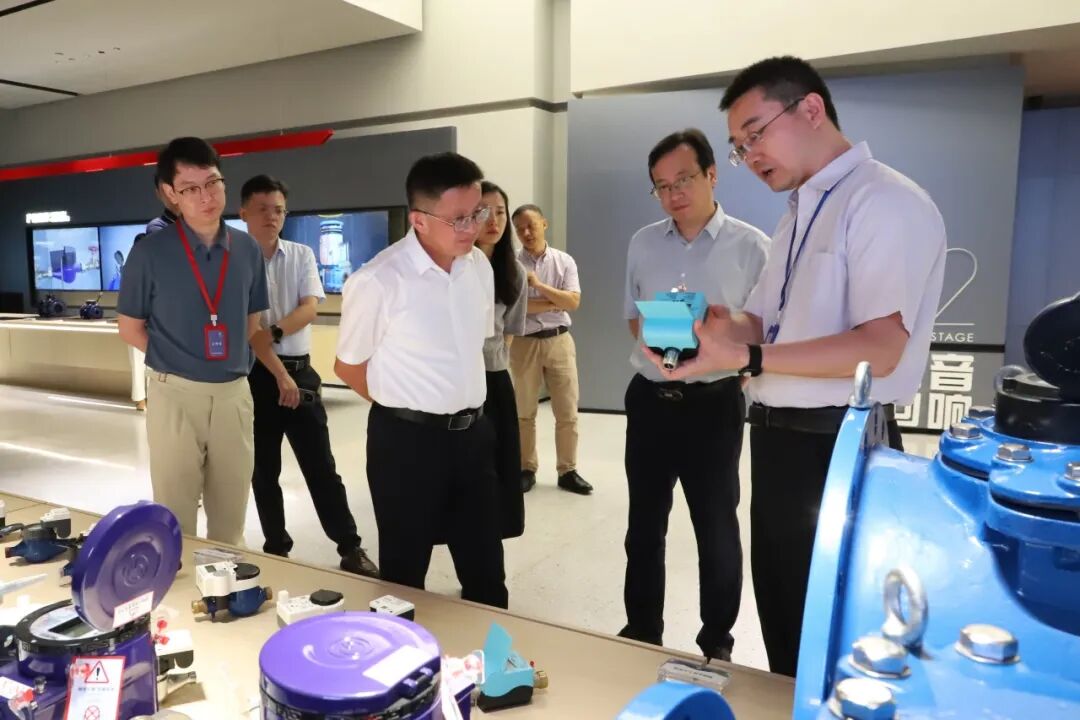 张水清一行实地参观了企业展厅,深入了解宁水集团的发展历程、战略布局与创新成果。作为国家级制造业单项冠军企业,宁水集团积极运用物联网、大数据、云计算等新一代信息技术,推动传统水表制造向数字化、服务化转型,加快物联网、人工智能等前沿技术与水务场景的融合应用。目前,公司已构建起涵盖智能计量终端、智慧水务平台及供水管网全生命周期管理的完整技术体系,在供水管网监控系统、智慧水务大数据服务平台等领域形成技术领先优势,相关项目先后入选工信部大数据产业发展试点示范、制造业“双创”平台试点示范,并成为移动物联网智能表计领域唯一标杆案例,以实际行动响应城市数智化战略。