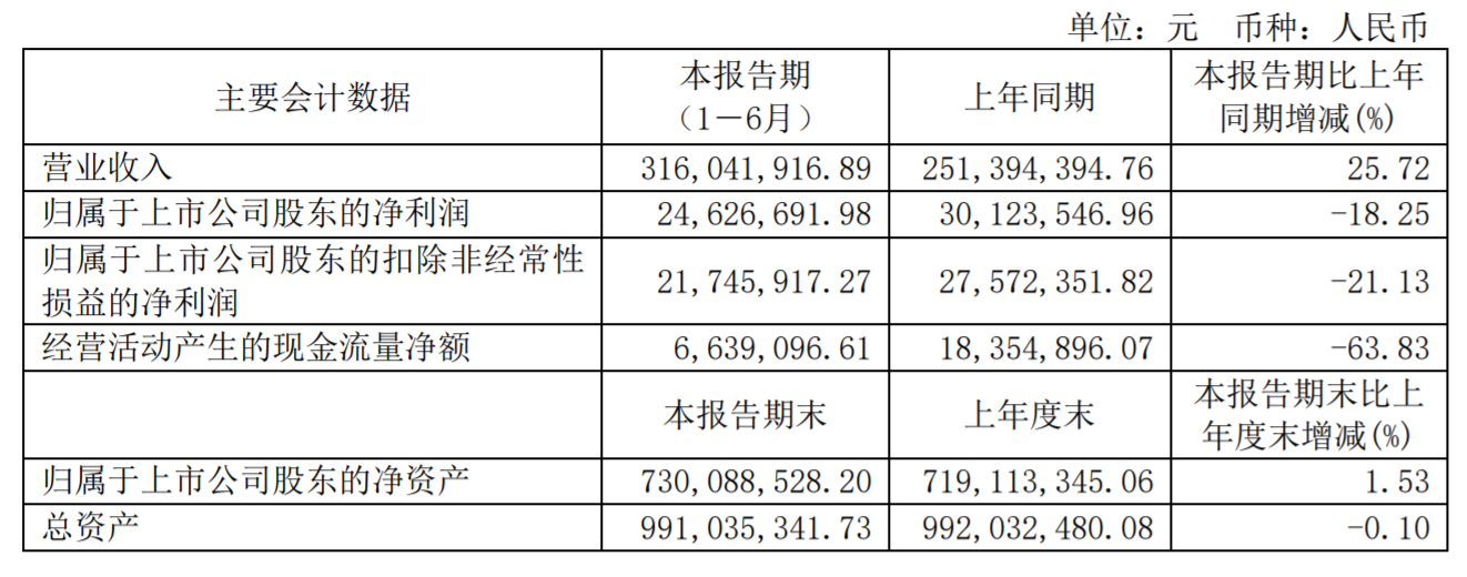8月24日晚间,浙江德宏汽车电子电器股份有限公司(以下简称“德宏股份”)发布2021年半年度公告。公告显示,德宏股份上半年营业收入为3.16亿元,同比增长25.72%,归属于上市公司股东的净利润为2462.67亿元,同比减少18.25%,具体情况如下图: