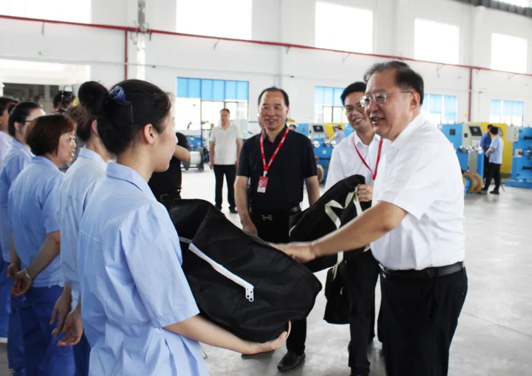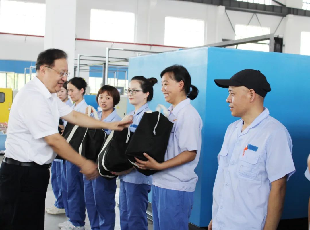 烈日炎炎,骄阳似火,迎来持续晴热高温天气。7月17日上午,绍兴市委副书记、社工部部长、政法委书记王涛来到越城区浙江盛洋科技看望慰问了奋战在高温下的一线职工,为他们送去了“清凉大礼包”,并向一线职工致以崇高的敬意和衷心的感谢。绍兴市总工会党组成员、副主席倪水康,越城区委副书记、社工部部长、政法委书记应尧刚,盛洋科技董事长叶利明等一同参加慰问。
