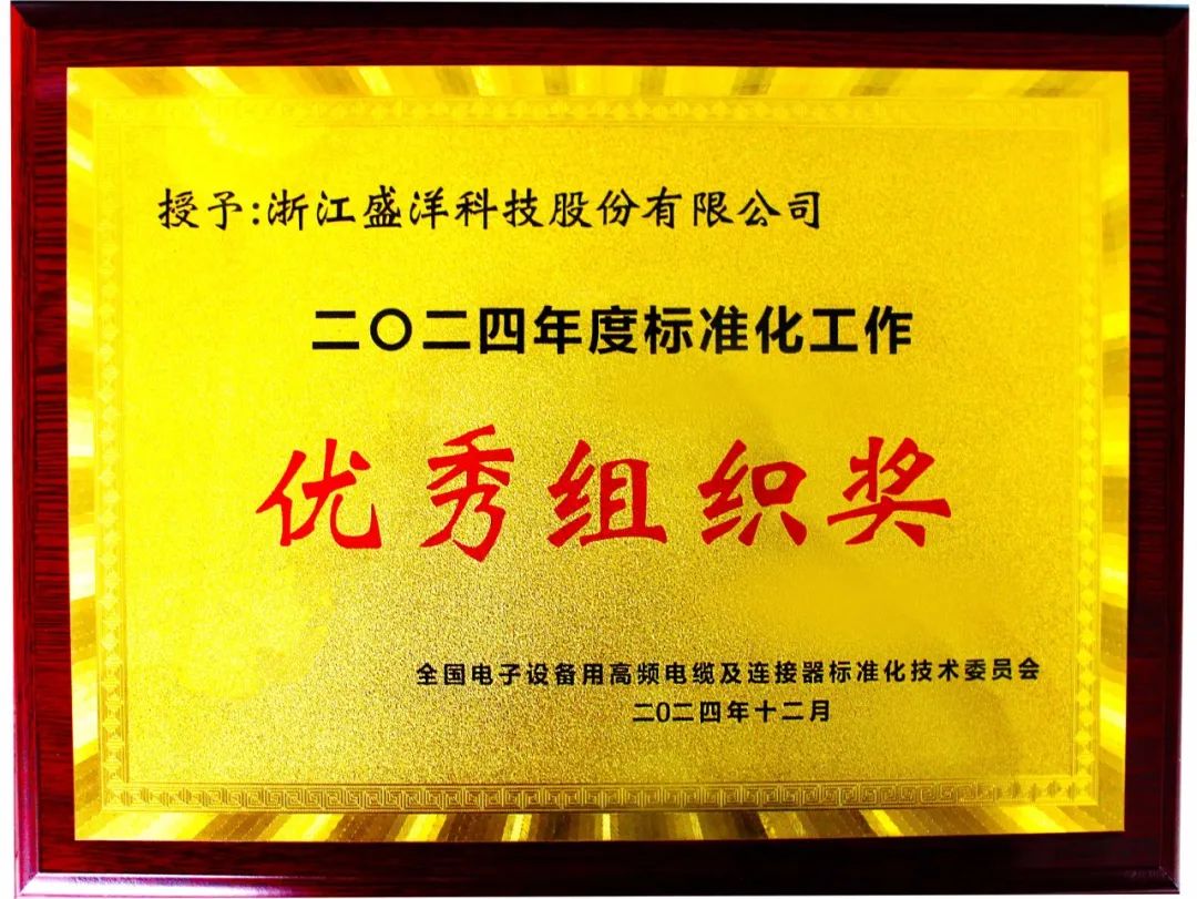 12月7日,全国电子设备用高频电缆及连接器标准化技术委员会召开2024年年会暨四届第四次全体会议,其中浙江盛洋科技股份有限公司荣获二〇二四年度标准化工作优秀组织奖。