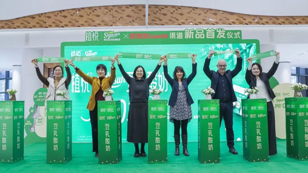 1月17日下午,家家悦集团与植悦品牌、法国知名植物基品牌Sojasun(素芽膳)在荣成九龙城购物广场共同举办“植悦豆乳酸奶新品首发仪式”。这款融合欧洲工艺与本土口味的健康饮品,正式在家家悦全国门店同步上市。