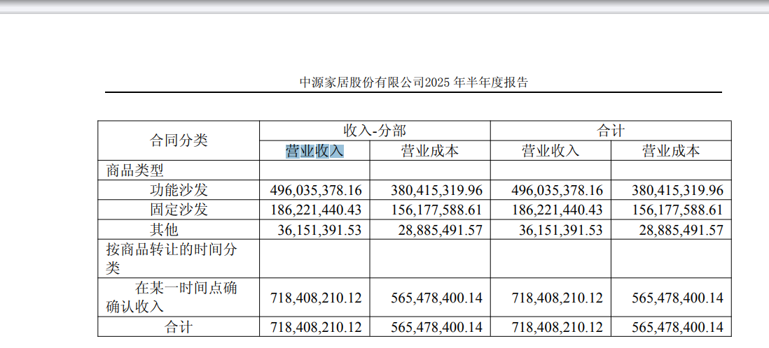 值得关注的是,中源家居近期业绩表现承压。据中源家居2025年半年度报告,公司实现营业收入7.24亿元,同比增长1.51%;归母净利润为-954.18万元,较2024年同期的307.47万元下降超过400%,出现由盈转亏。