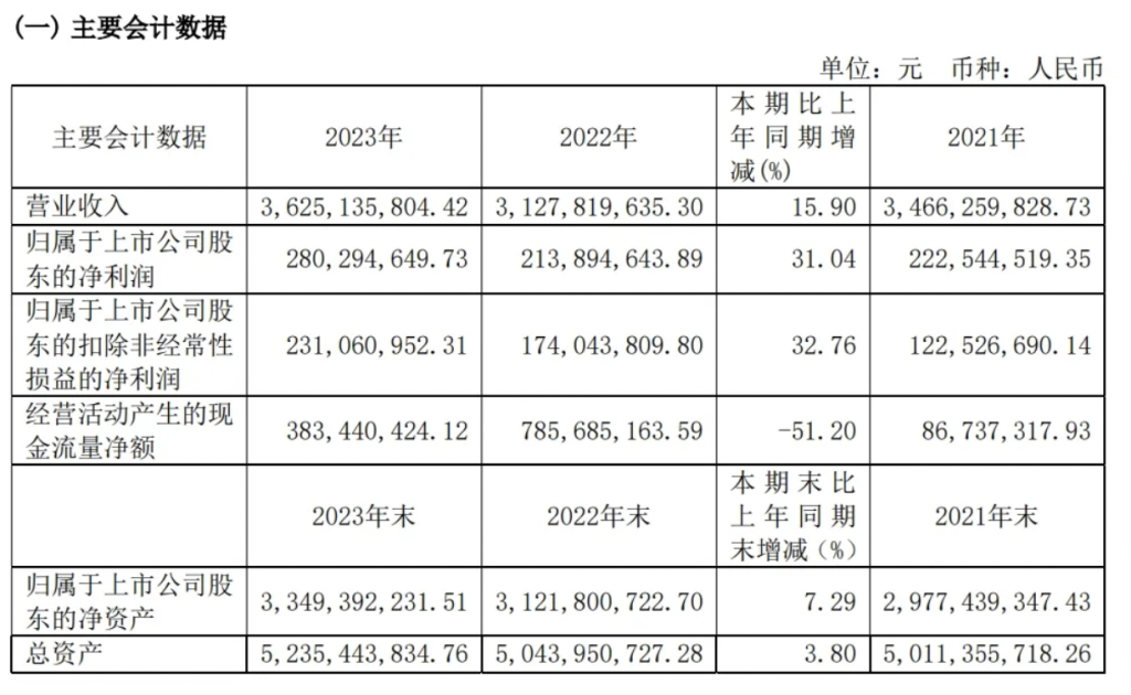 财报显示,公司营业收入约36.25亿元,同比增长15.9%;归母净利润约2.8亿元,同比增长31.04%。
