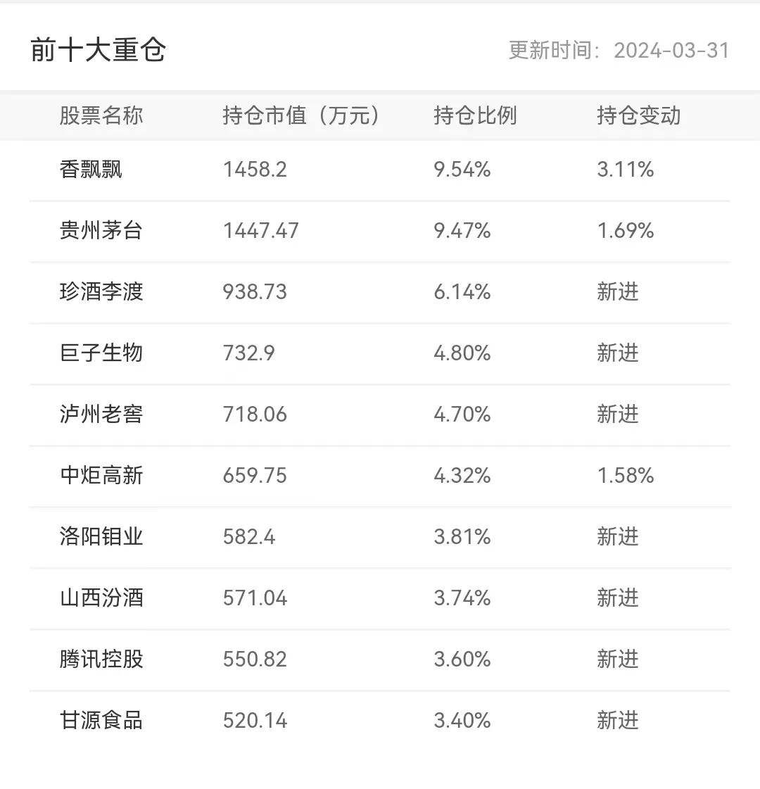 截至2024年一季度末,香飘飘现身7只基金的十大重仓股中,较上季度增加2只;合计持有539.49万股,持股市值8550.90万元。