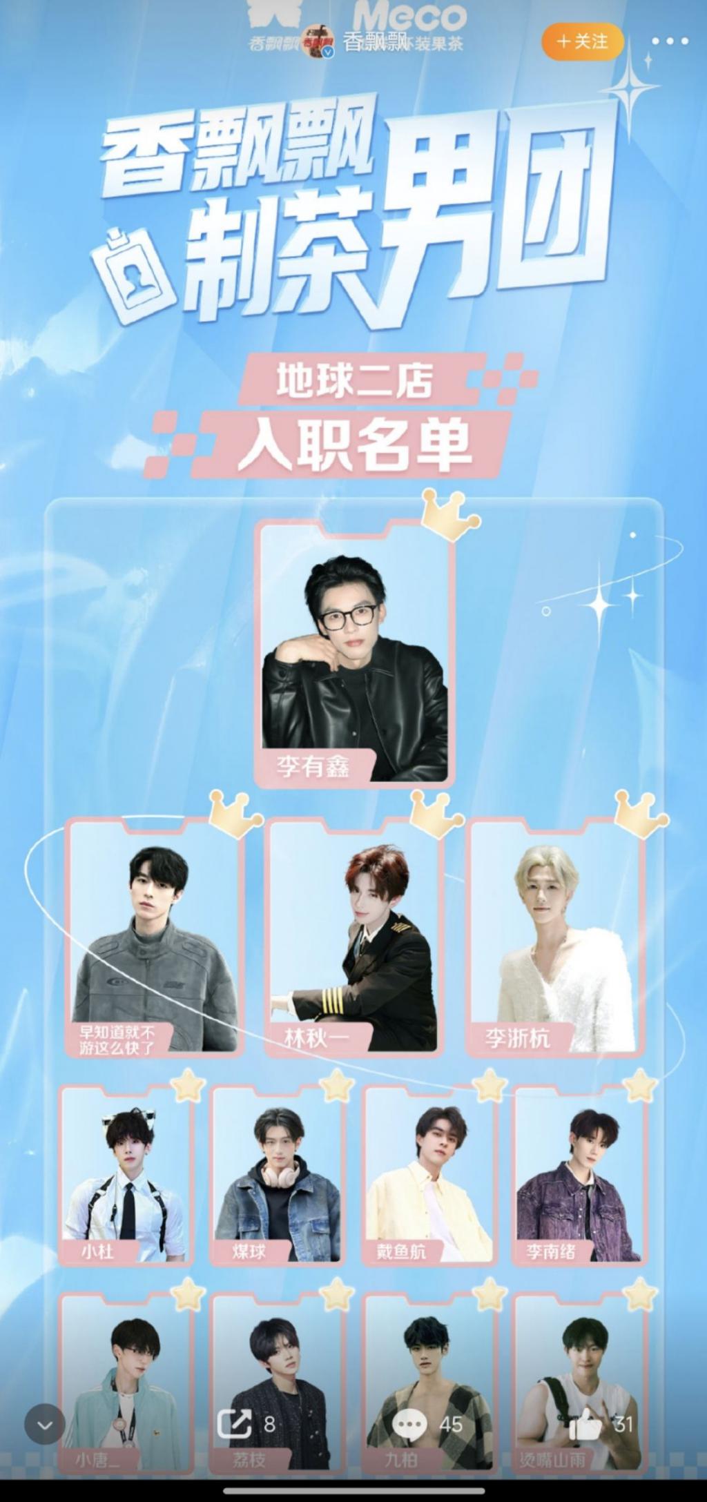 香飘飘于 3 月 10 日开启线上"制茶男团"全网征集活动,由网友实时线上投票选择奶茶店最终入职人员。也有网友发现该公司招聘公告显示"空乘专业优先、180 以上",应聘人员均有模特、网红、选秀练习生等经历。此前,香飘飘杭州首家线下奶茶店十分火爆,出现门店现场连续 22 天排队时长一个半小时以上的盛况。