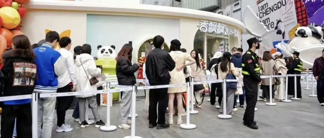 成都快闪店开出当天,这些被网友票选出的店员还在现场表演才艺,“美颜冲击”下,“喝茶几分钟,排队2小时”的状况又达成了。