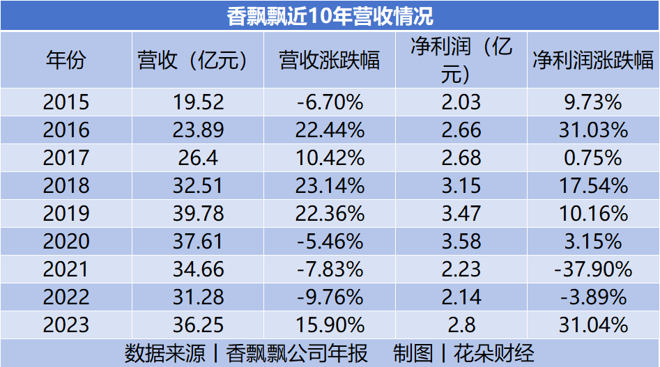花朵财经翻开香飘飘近10年财报发现,香飘飘走的是一条稳健路线,每年净利润基本保持在2亿以上。