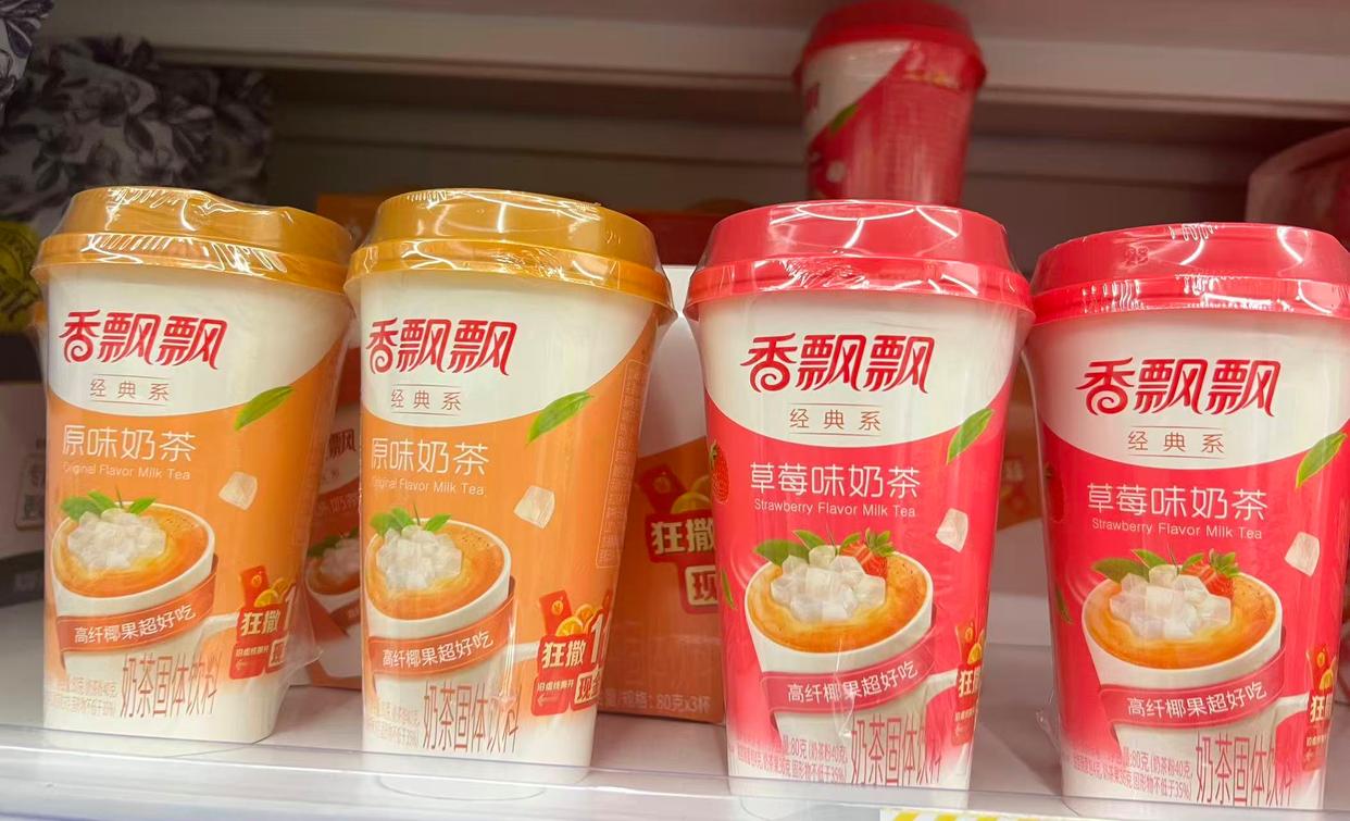 (超市货架上的香飘飘冲泡奶茶)