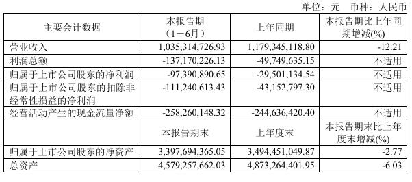 根据其公布的2025年半年度报告,公司上半年实现营收10.35亿元,同比下降12.21%,归母净利润亏损9739万元,同比骤降逾两倍。