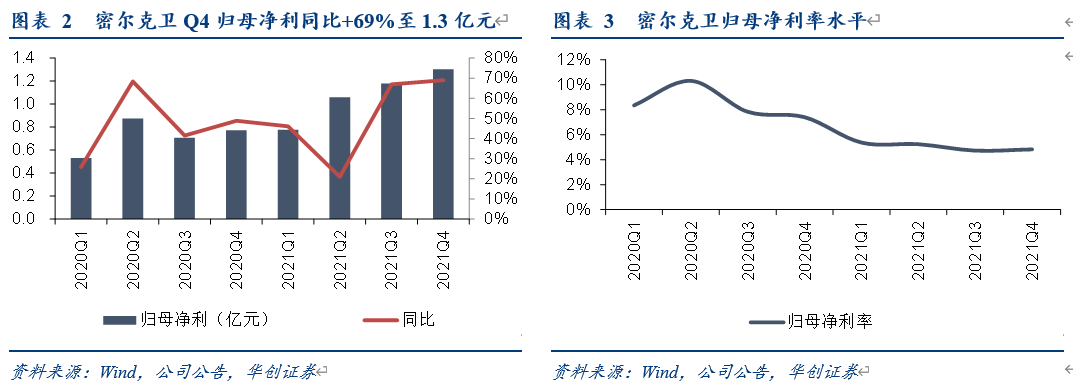 b)分季度看:Q4收入27亿,同比+158.9%,归母净利1.3亿,同比+68.9%;扣非净利1.2亿,同比+81.5%。Q1-3扣非净利分别为0.77、1.09、1.01亿,同比分别增长50%、27%、50%,可见Q4同环比均提速。