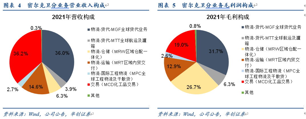 d)MPC全球工程物流及干散货,为公司新增的国际工程物流板块,21年营收2.3亿;毛利率9.9%。