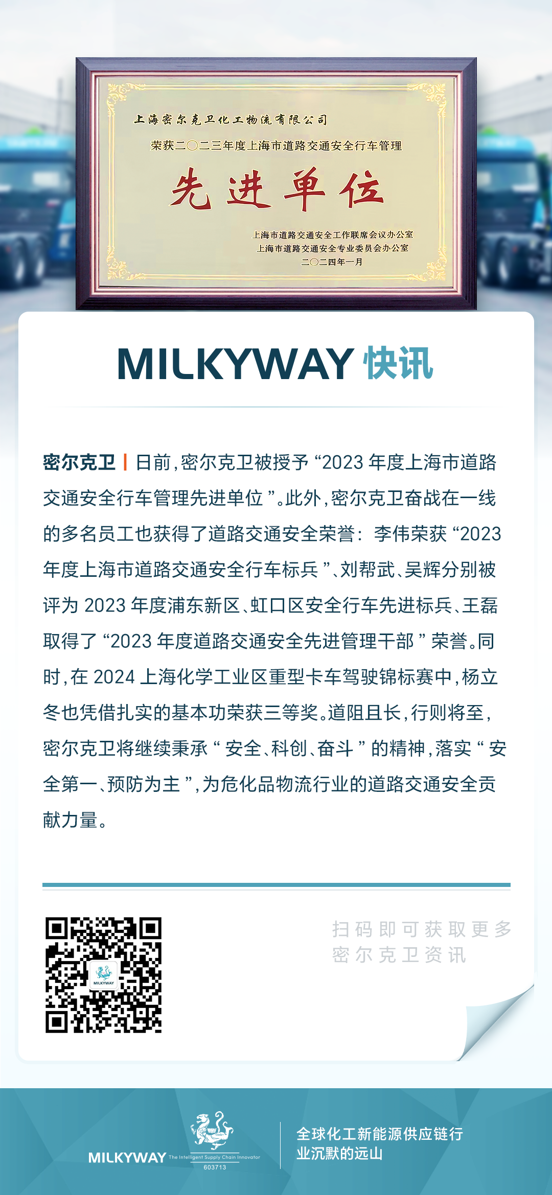 密尔克卫被授予2023年度上海市道路交通安全行车管理先进单位