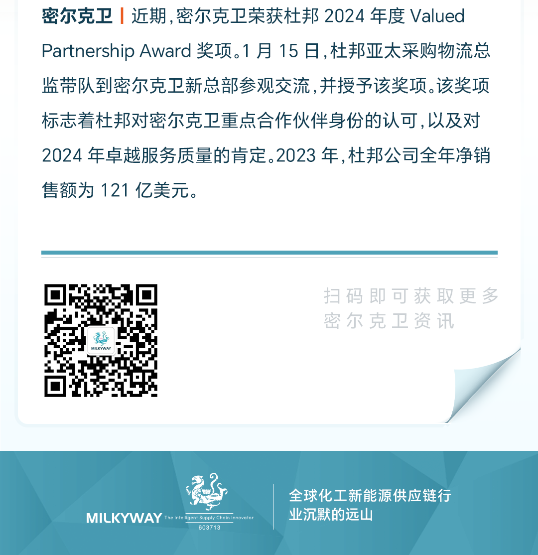 密尔克卫荣获杜邦2024年度Valued Partnership Award奖项