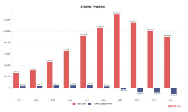 其实,塞力医疗的业绩警报早在2020年就已悄然拉响。当年起,公司便陷入“增收不增利”的怪圈,2021年更是如同踩下了亏损的“油门”,净利润由盈转亏,且连续四年亏损幅度逐年扩大。2024年,公司营收下滑9.74%至18.12亿元,归母净利润亏损则扩大至2.09亿元。