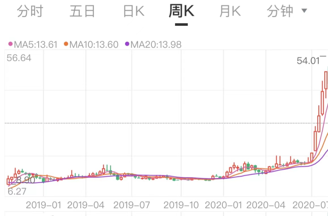 进入2020年,海利生物股价在底部不断抬升,并于当年三季度突破箱体,迎来一波酣畅淋漓的行情。2020年8月3日,海利生物股价最高触及54.03元/股。据此计算,章建平持仓市值飙升至17.35亿元。