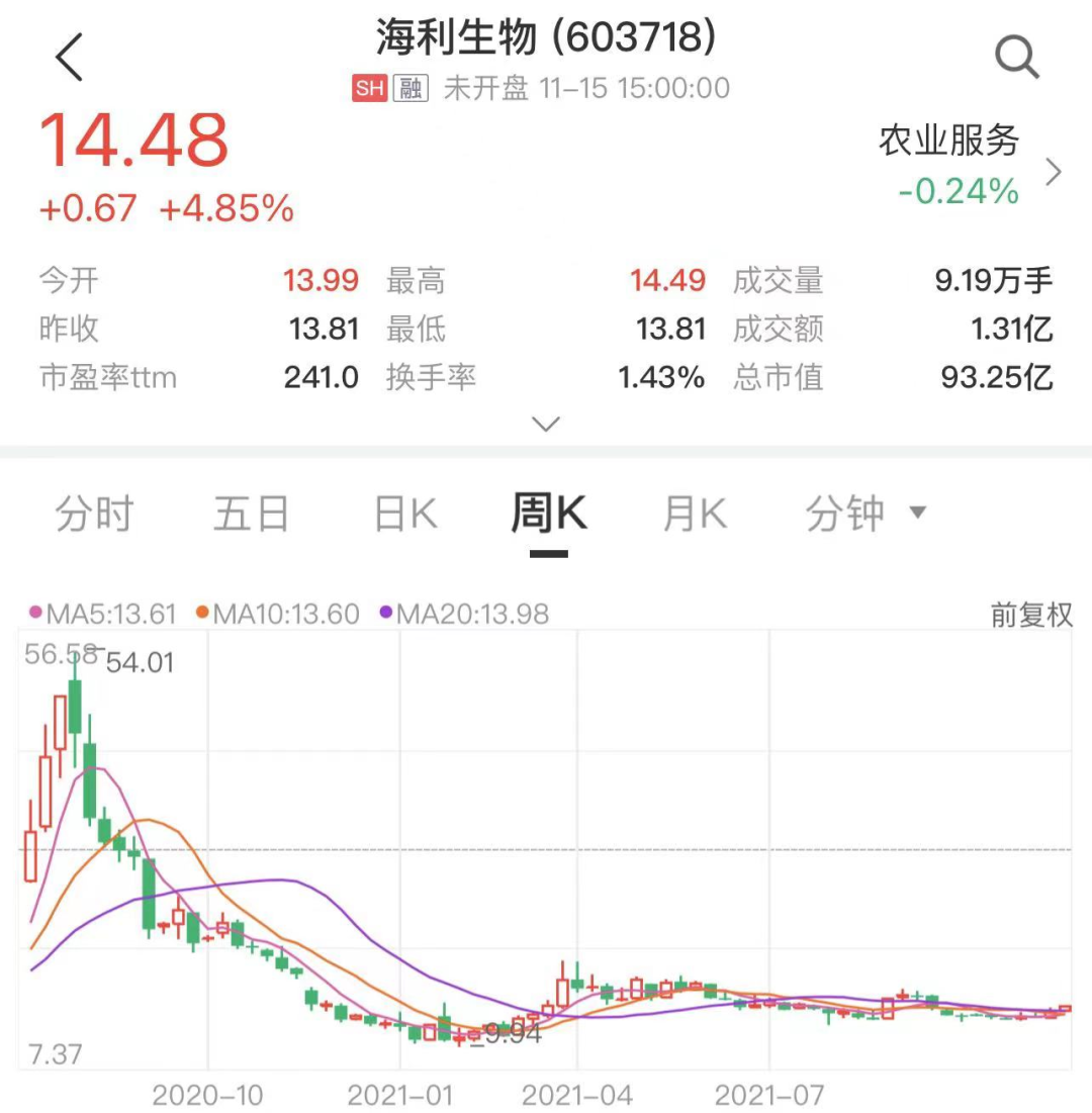 此后,海利生物股价出现反弹。截至11月15日收盘,海利生物报14.48元/股。这意味着,在上市公司定期报道显示章建平持股量不变的情况下,其持股市值约为4.65亿元,几乎回到了原点。