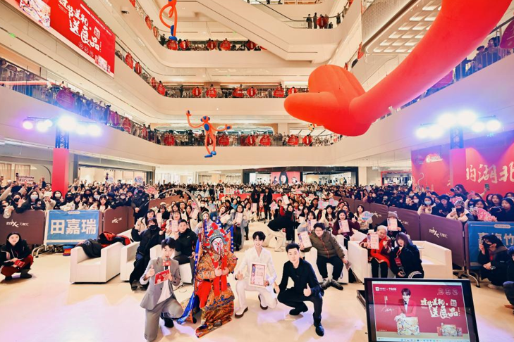 传承千年国粹,汇聚四海良品。值首个“非遗版”春节即将到来之际,首次联动“非遗”文化的良品铺子年货节,于2025武汉新春消费季先声夺人。活动现场,田嘉瑞和京剧表演艺术家、非遗剪纸艺术家热烈互动,唱京剧、学剪纸,还走进良品铺子武汉万象汇“嘉瑞送福”主题店,在抖音官方直播间和网友互动,把传统文化和福气送给全国网友。