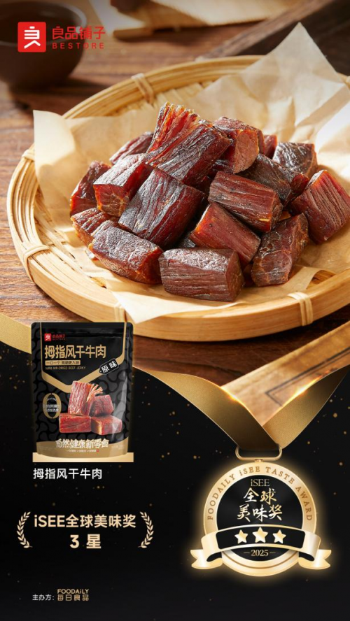 近日,第七届iSEE全球奖复审结果重磅揭晓。良品铺子凭借其卓越的产品创新力和对“自然健康新零食”理念的坚守,旗下多款产品——益生元西梅、牛乳蛋白棒(原味)、牛乳蛋白棒(树莓味)、岩烧猪肉脯及拇指风干牛肉,分别斩获iSEE全球美味奖1星至3星荣誉。这一成就意味着良品铺子“自然健康零食”的品牌主张符合当代消费者对食品的追求,为行业树立了健康与美味兼顾的标杆。