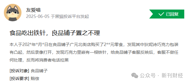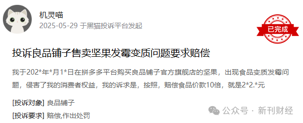 供应链博弈的负面效应已初现端倪。为应对代工费用压缩,部分供应商可能采取“隐性降本”策略,导致食品安全事件频发。黑猫投诉平台数据显示,截至2025年6月5日,良品铺子累计投诉量达2102件,投诉集中于异物混入、发霉变质等质量问题,远高于同行业盐津铺子455件的投诉规模。