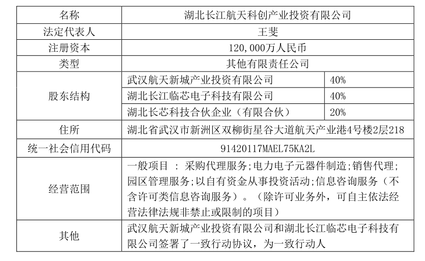 (2)湖北长江临芯电子科技有限公司(2025年7月14日成立)持股40%,背后出资人包括长江产投、知名集成电路产业投资平台临芯投资。
