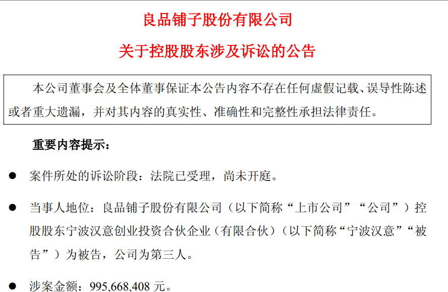 一则诉讼公告让良品铺子控制权变更充满变数。