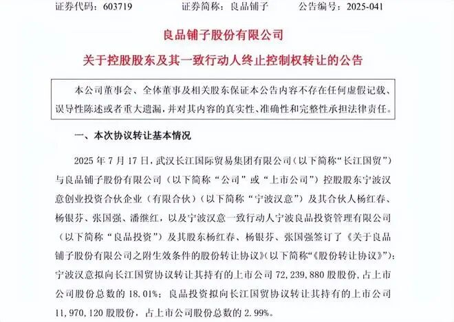 10月16日晚间,良品铺子发布相关公告,明确表示与武汉国资旗下公司的股权交易终止。公告披露,交易失败的直接原因是标的股权存在冻结情形,无法完成过户。