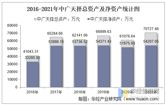 华经产业研究院数据显示:2021年中广天择总资产为70727.48万元,相比2020年增长了9650.84万元,同比增长15.8%;净资产为54207.05万元,相比2020年增长了2231.12万元,同比增长4.29%。